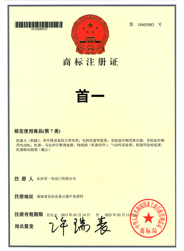 長沙首一電動門有限公司(營業(yè)執(zhí)照代碼:9143010357027453X4)