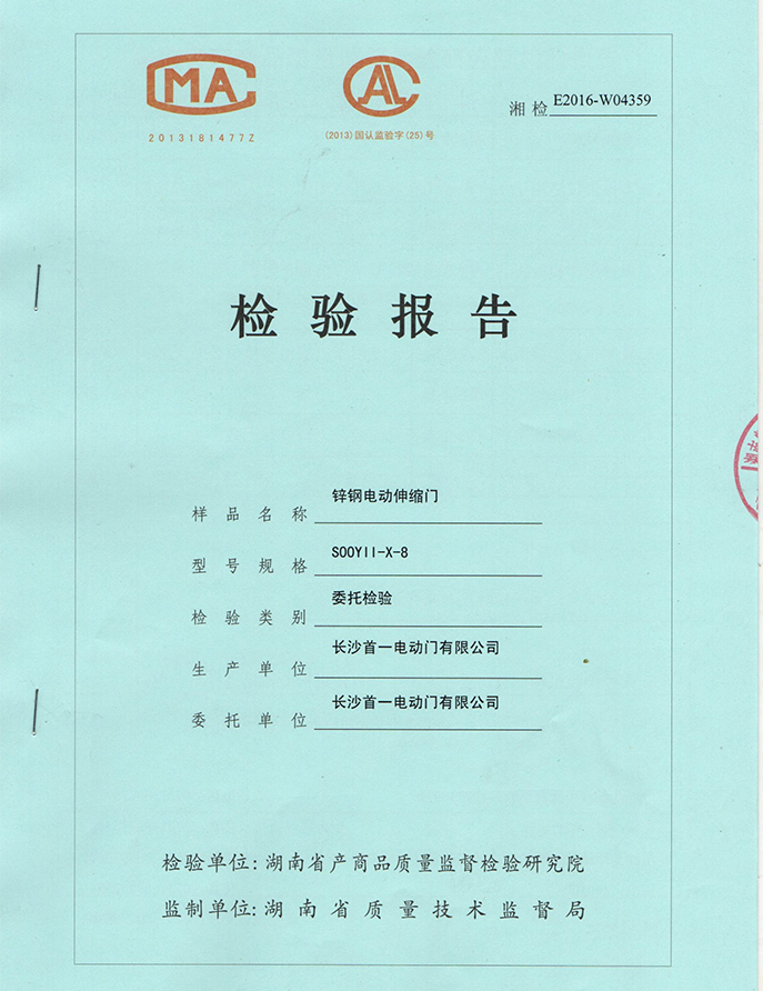 鋅鋼電動(dòng)伸縮門檢驗(yàn)報(bào)告